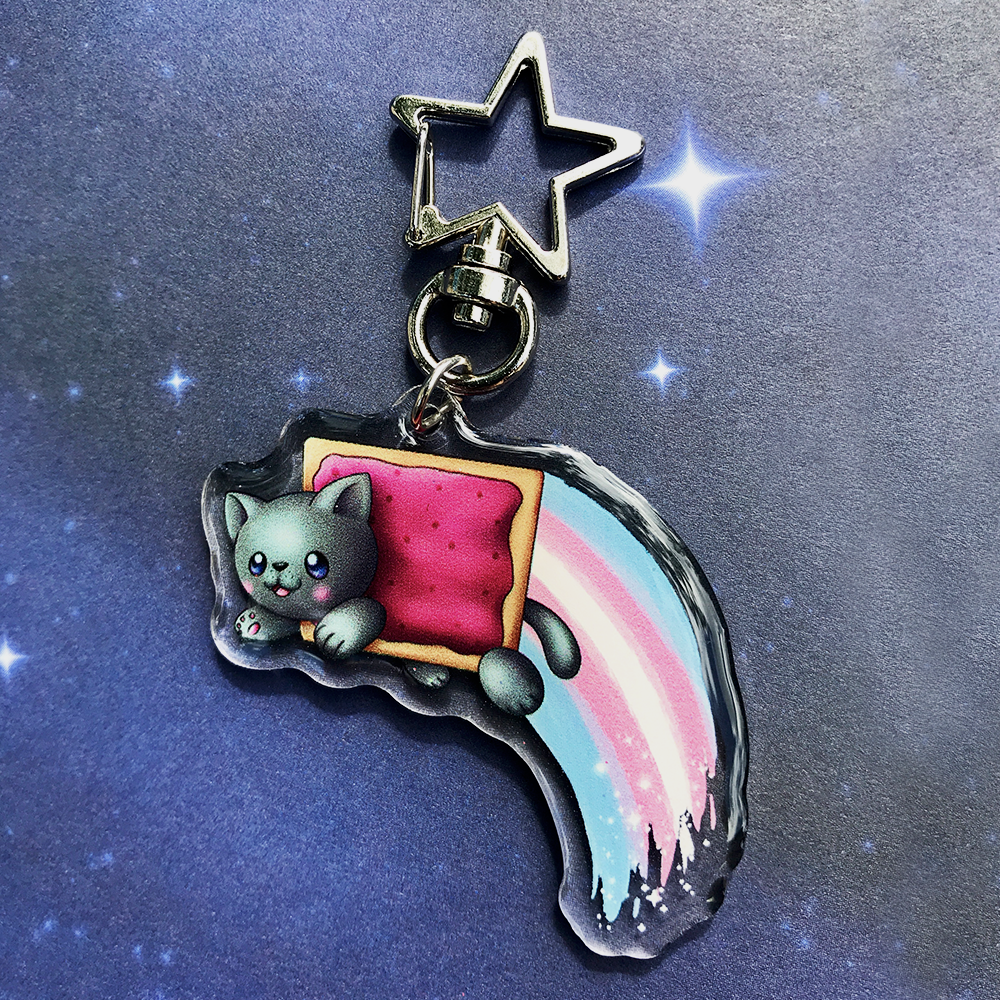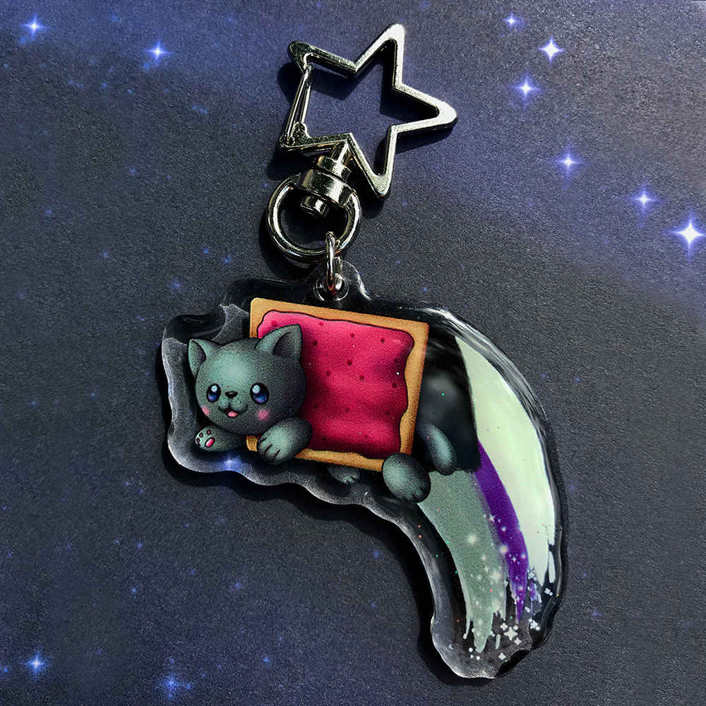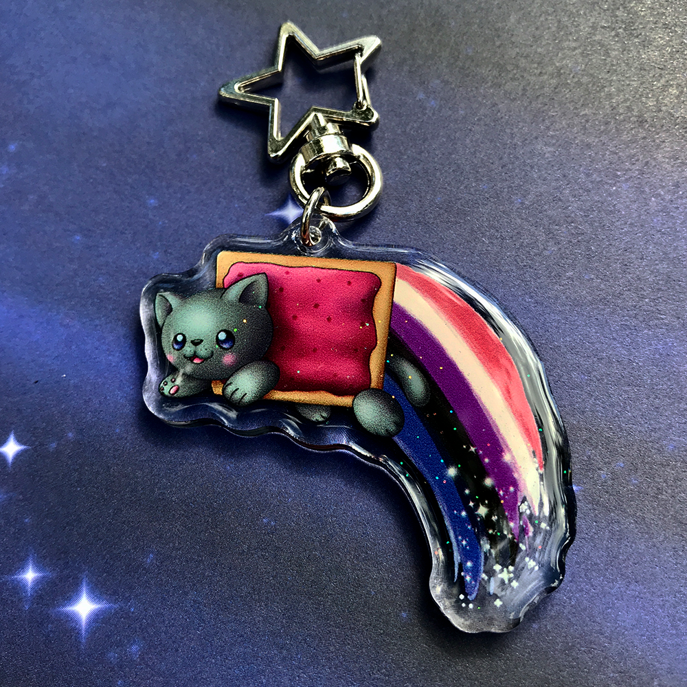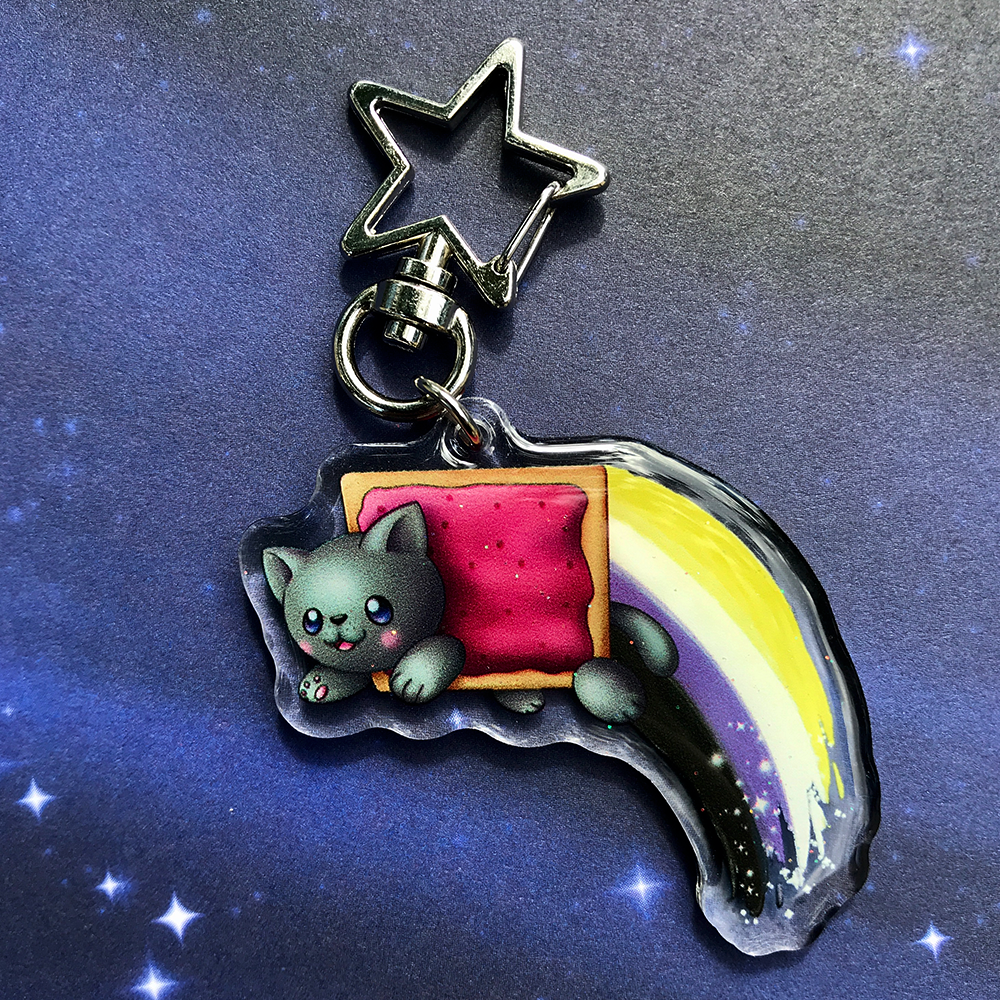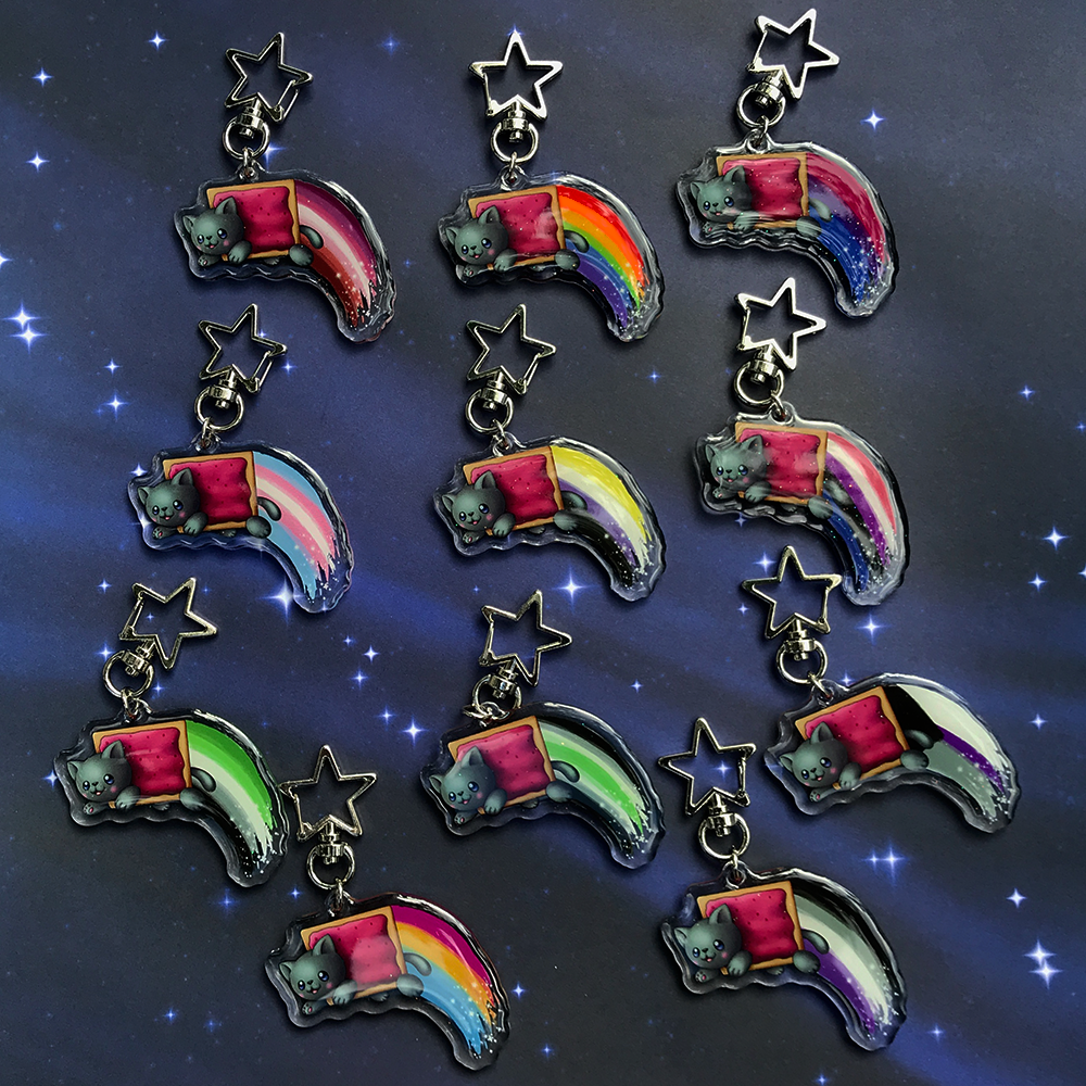 Share your identity with Pride with these cute keychains! Inspired by the Nyan Cat meme, each keychain showcases one of the many Pride flags along with an adorable poptart cat! As someone part of the LGBTQA+ community, I wanted to make my own Pride merch to share!