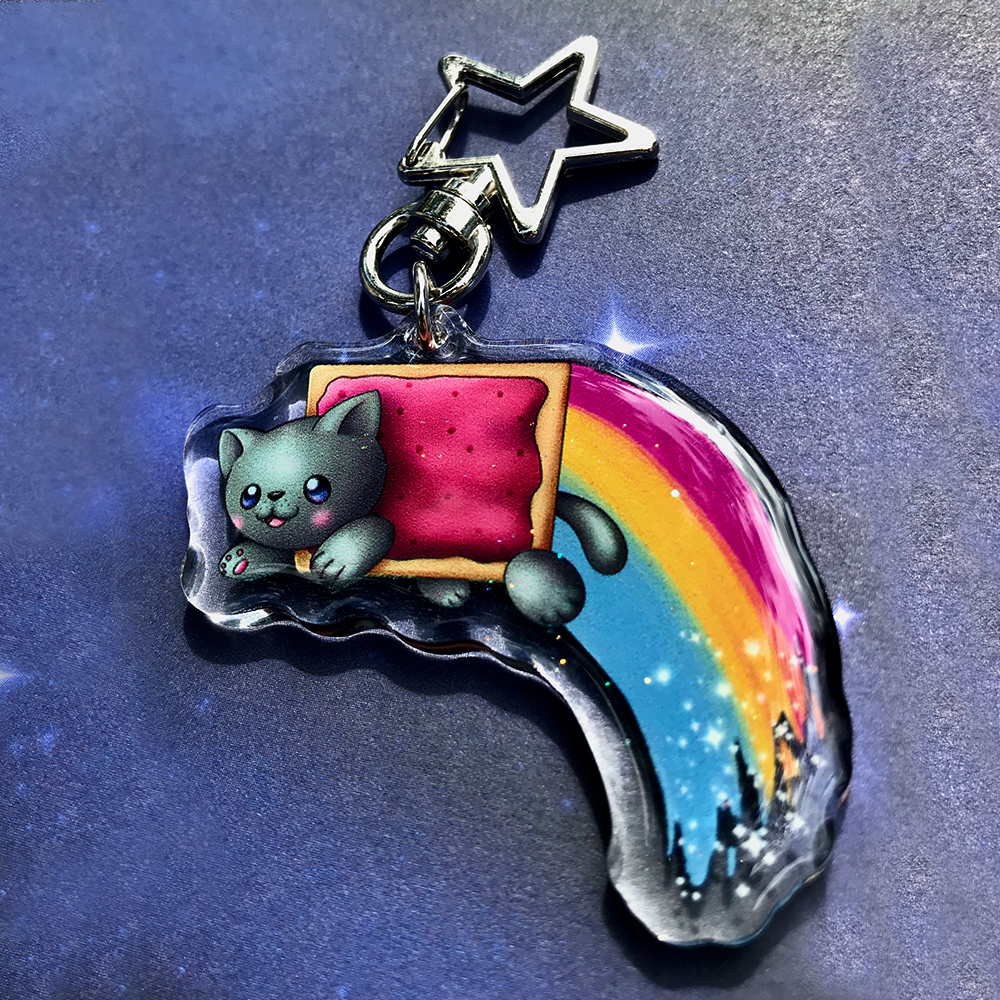 PLEASE NOTE: These are old stock and the epoxy has since yellowed. The current Lesbian Nyan has not yellowed and will not be sold at the discounted price, all others have been reduced
